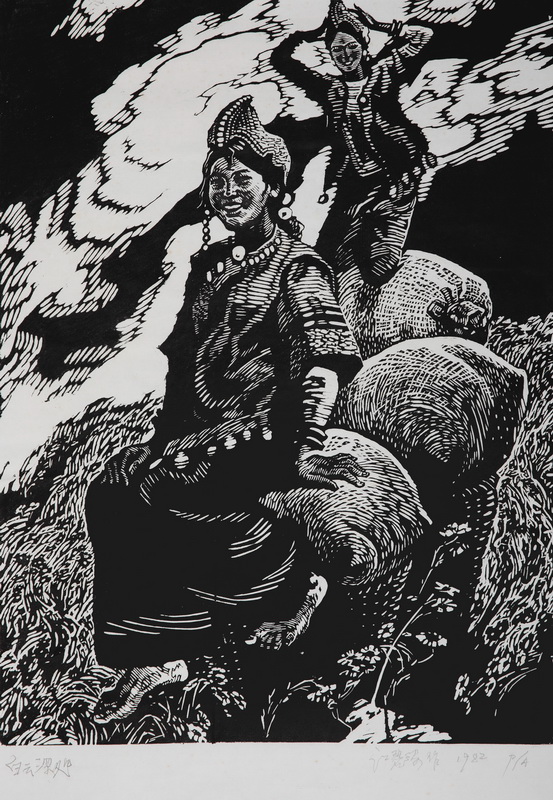 《白云深处》 江碧波 63×45cm 版画 1982年 宁波美术馆藏
