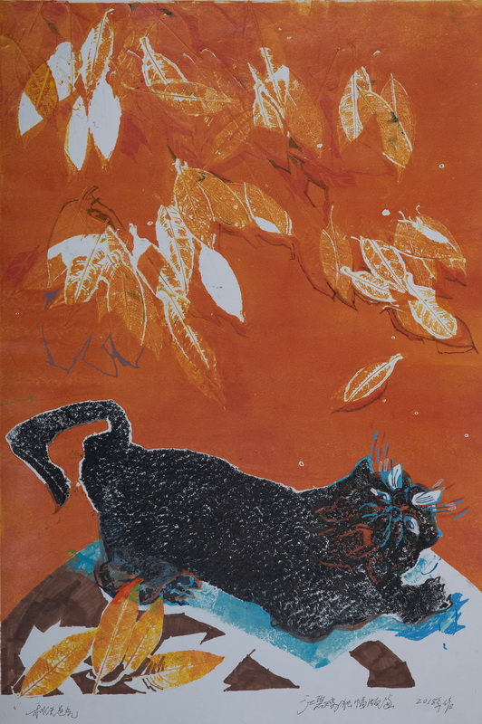 猫系列之二《秋天色光》江碧波 73×49cm 版画 2018年 宁波美术馆藏