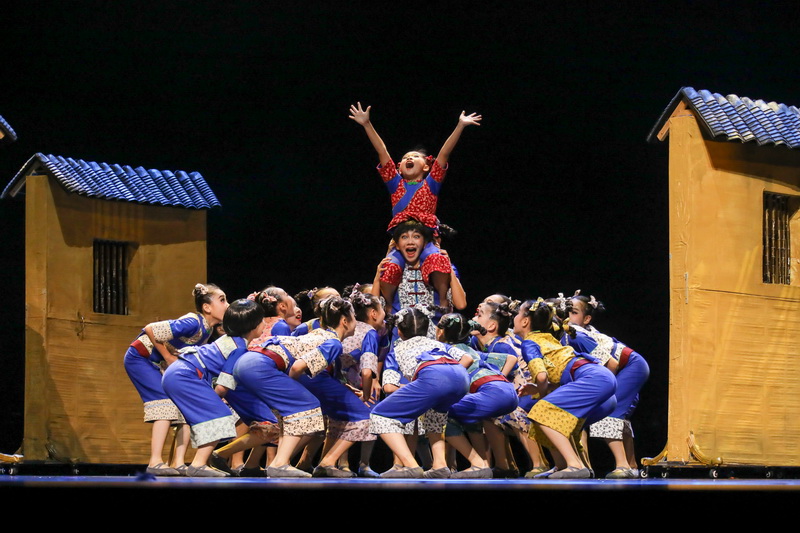 宁波市爱菊艺术学校的《“童”心合力》则以校园拔河为创作灵感,围绕对抗、僵持、拼搏、受挫、团结、胜利等情节一一展开,讲述只有团结一心,才能取得成功的人生哲理。今年11岁的小演员杜芊墨接受采访表示,这段时间她和伙伴们进行了集中训练,激动又紧张,“今年是‘亚运年’,我们的节目融入了体育精神,表达积极向上、奋斗向前的感觉。”