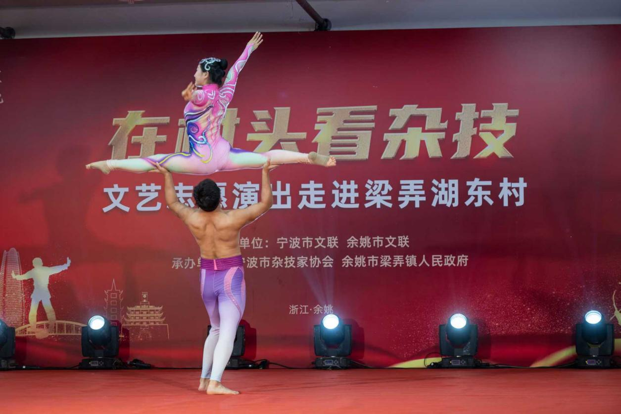 2024年9月20日,宁波市杂技家协会举办的“在村头看杂技”文艺志愿演出走进了宁波余姚梁弄镇湖东村。当天,活动吸引了当地近500人,演出现场气氛热烈。杂技文艺志愿者们以其精彩的技艺和别具一格的艺术表现方式,深深吸引了在场观众的目光。展示了杂技艺术的精湛技艺和无限魅力。值得一提的是,本次演出通过宁波杂技视频号进行了首次现场直播,将现场的精彩表演实时呈现给更广泛的观众群体。在线观看人数突破了1万余人,远超预期。这不仅让更多的人了解和欣赏到了杂技艺术,也进一步展示了杂技文化在现代社会中的广泛影响力和传播潜力。