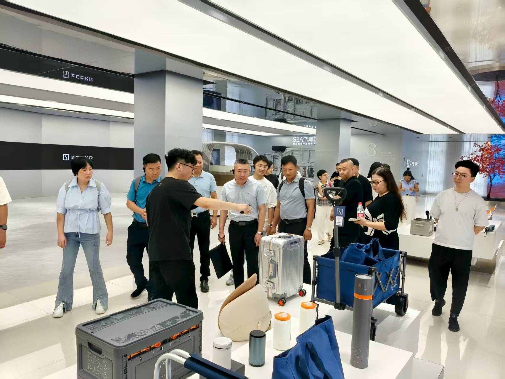 创作骨干们参观了极氪工厂的冲压、焊装、总装等数字化车间,近距离感受高精度机械臂、全自动物流系统等智能化生产的科技魅力。企业讲解员详细介绍了吉利汽车在科技创新方面的成果,如模块化电池、智能操控系统等,展现了“中国智造”的硬核实力。